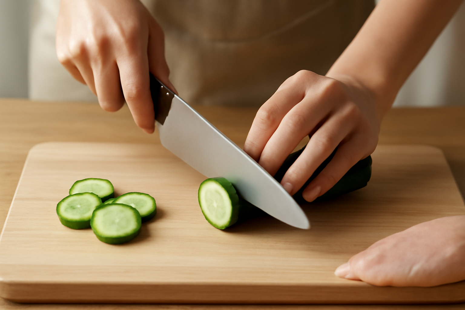- 安全対策:切る際は、指先を包丁の刃から遠ざけ、切り口をしっかり固定します。